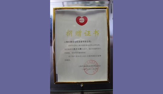 2014年,上海紅箭自動(dòng)化設(shè)備有限公司為上海市慈善基金會(huì)捐款 2014